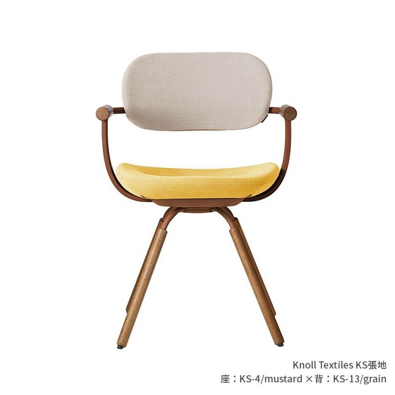バーテブラ03 4本脚(座面回転)木/オークダーク 本体:F2 Knoll(KS)コンビ張り 座:mustard[WEB限定 組立式]